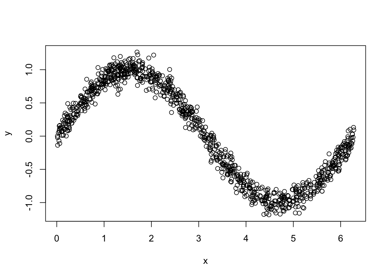 y=sin(x)+0.1*rnorm(1000)